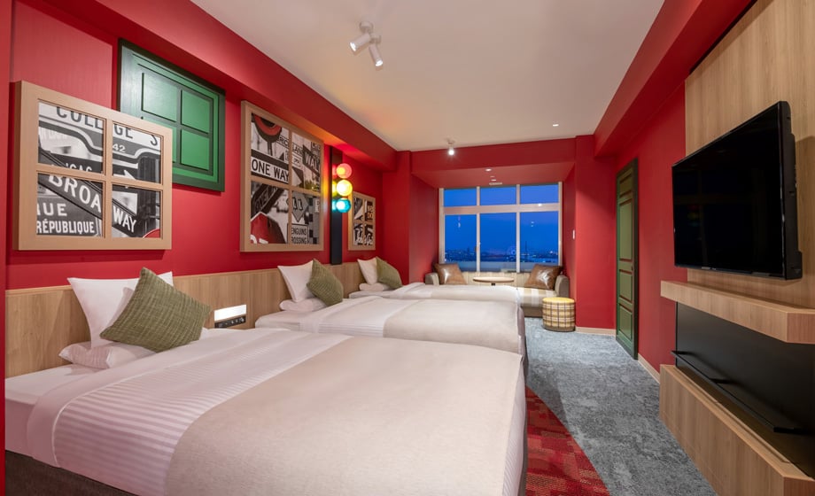 This is a super-fun, 34 m² - room, fitted with two 120 cm wide beds, which you can enjoy like a day out at an amusement park! Don’t let the excitement of your vacation end when you arrive back at your hotel room. Up to three people can stay in this room by using an extra bed.