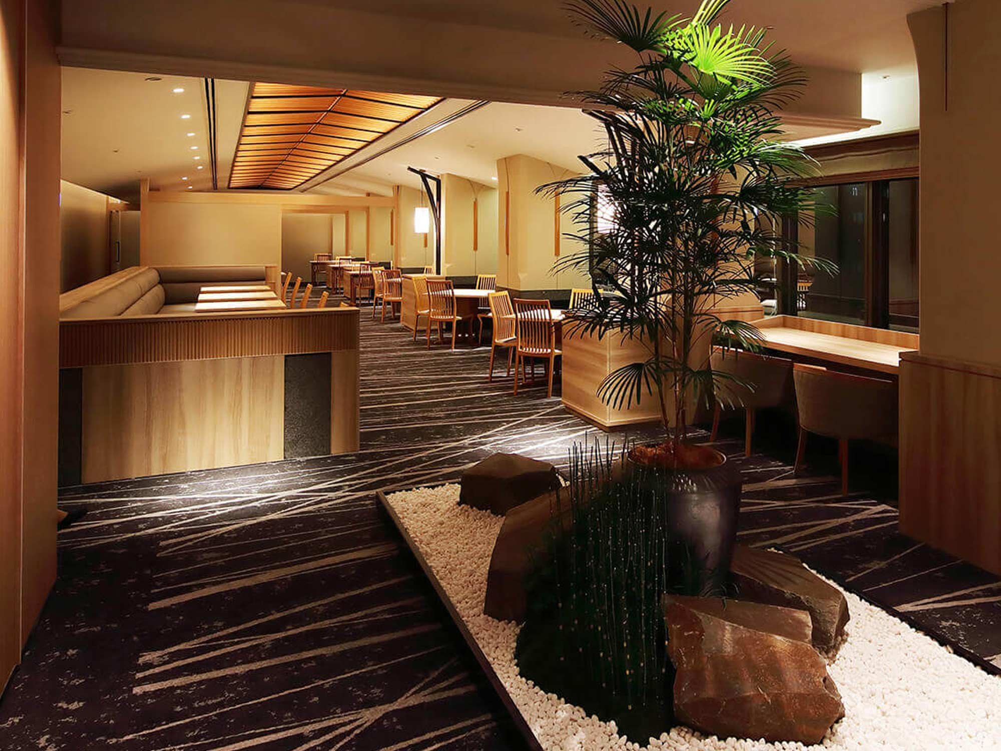ベイエリアの眺望を備えた20階のレストランフロアは割烹・鉄板焼・バーラウンジの3形態、今回は「割烹みなと」を中心に内装デザインを刷新しました。