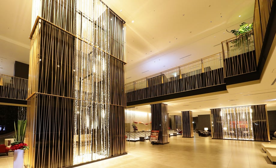 1階ロビーから2階までの吹き抜け空間では、「色」シャンパンゴールドのイルミネーションタワーとクリスマスオーナメントがゲストをお出迎え、「音」音階を持つ打楽器として神秘的な音色が人気の「ハンドパン」生演奏を聴きながら、「味」ホテルソムリエが厳選したワインビュッフェとクリスマスタパスが楽しめるプランをご用意いたしました。