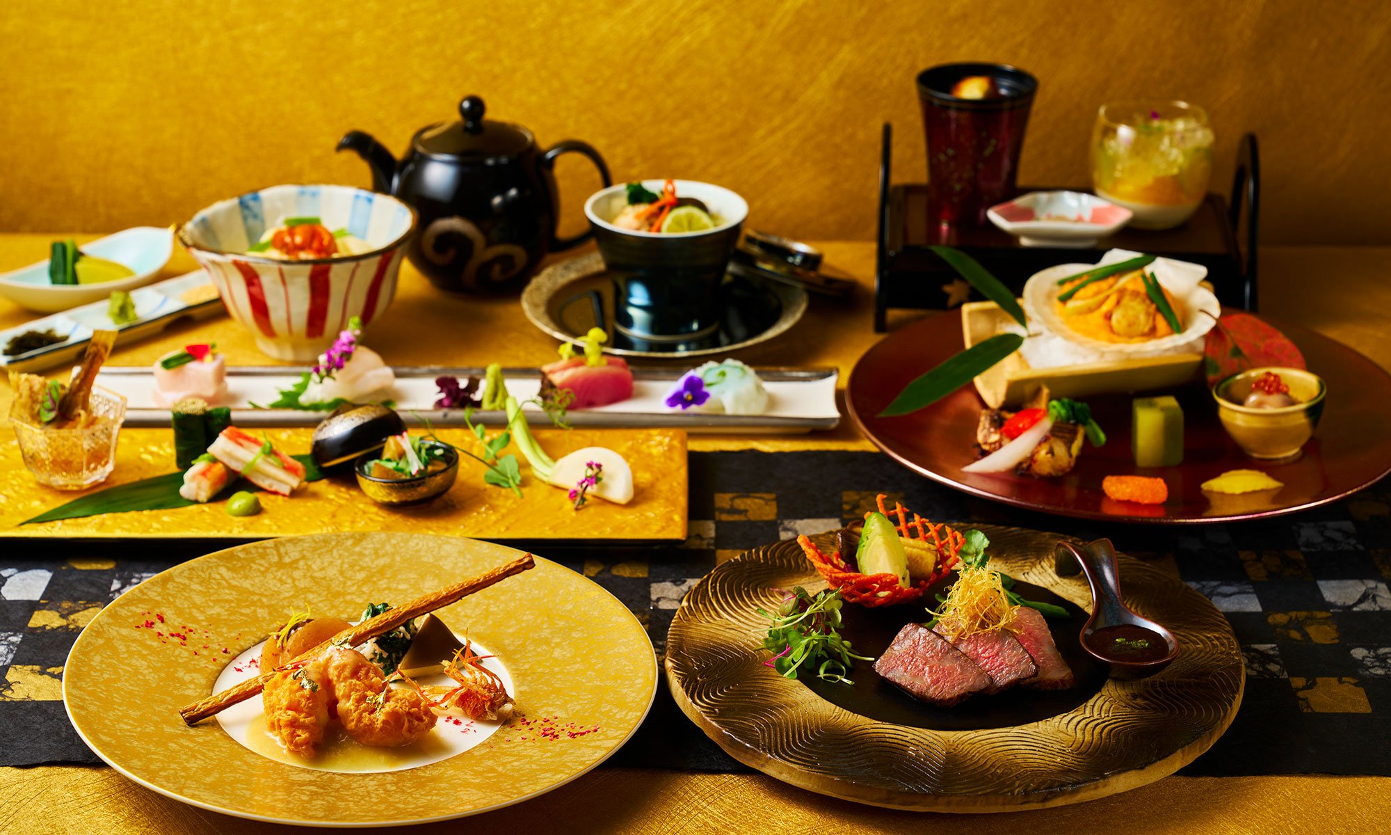 続くお料理では、甘鯛で仕立てた大阪発祥の船場汁をはじめ、脂が乗った鮃や寒鰤の造里、帆立貝・林檎の黄身バター焼き、低温調理で旨みを閉じ込めた和牛サーロイン醤油麹漬けなど、多彩な品々が並びます。