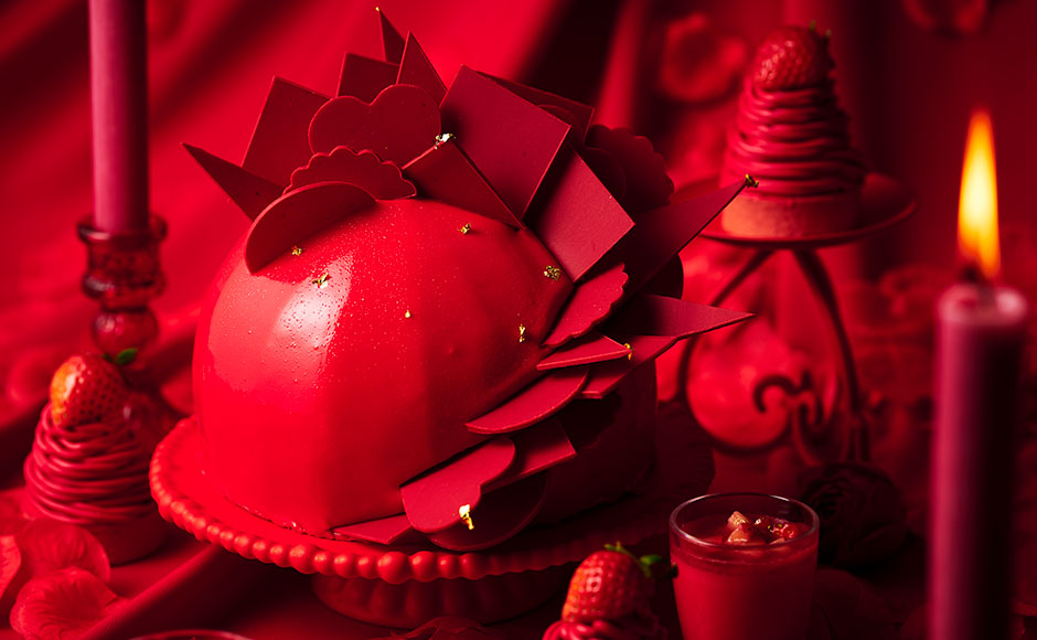 全スイーツにいちごを使用し、いちごの表情を変えることで、色ごとの性格や感情を描き出しました。たとえば、赤は主人公気質で情熱的な絶対的センターのような存在。圧倒的なビジュアルと味わいで、一瞬で心を掴む存在として仕上げています。そのほかの色も、それぞれの性格をイメージして仕立てたスイーツが揃います。