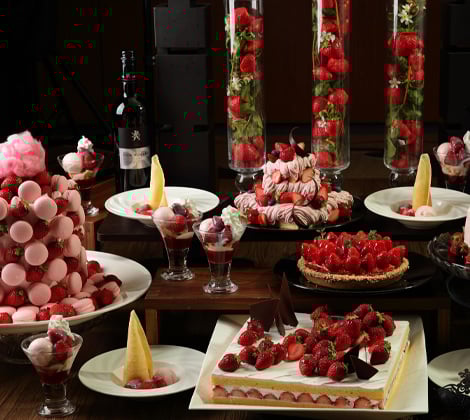 以草莓為主題,「草莓山」、「草莓塔」等7種新甜點以及既有的甜點,能夠盡情享用共16種甜點。