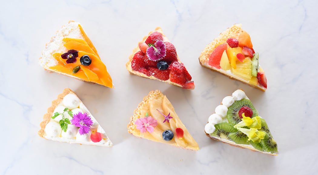 主要出售以「花」為題材製作的可食用花朵、以及用季節性水果裝點的蛋糕、蛋撻。